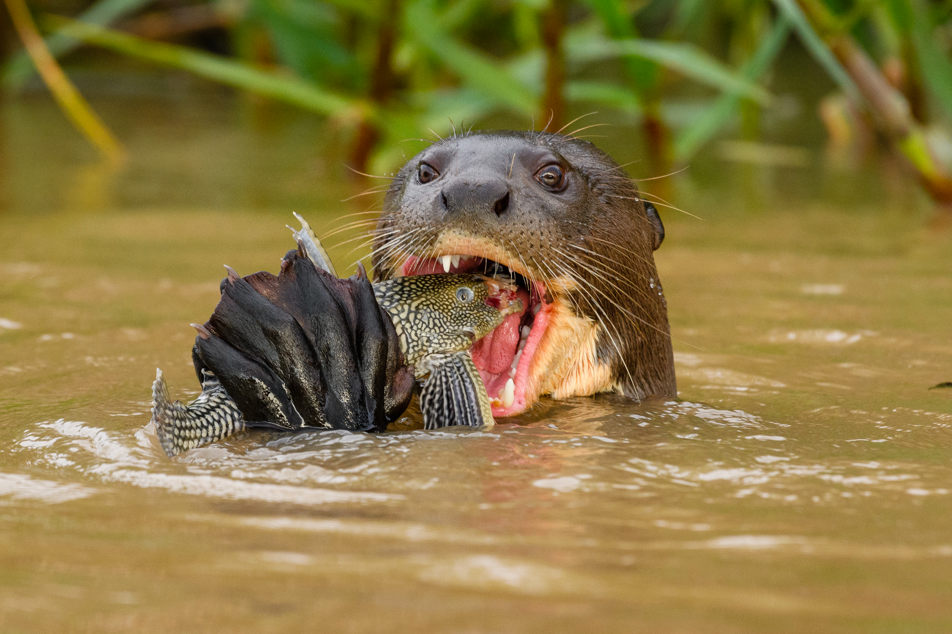 La loutre géante occupe une grande variété de plans d'eau douce et n'est pas habituée